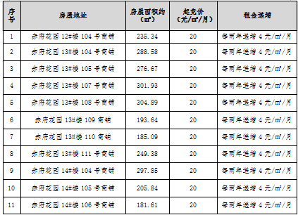 赤府花园安置房小区商铺租赁竞拍公告