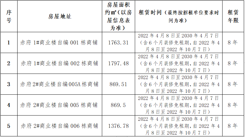 备注:(1)本次招租房屋涉及电表,水表、需中标人或直接委托人自费自行开户,房屋以现状出租,消防报建审批手续自行办理,涉及一切维修改造工程产生的费用均由中标人自行承担。