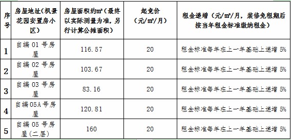 枫景安置房小区房屋租赁竞拍公告