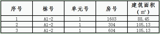 | 5 | 商业2-2#-1-105 | 38.92 | 45 | 商业2#-4-1- 0114 | 39.50 | 85 | 商业2-5#-1- 0208 | 74.40 |