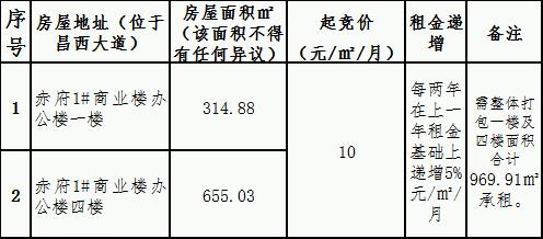 赤府安置房1#商业办公楼一楼及四楼整体打包租赁竞拍公告