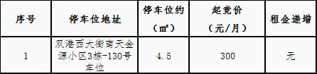 三、本次竞拍只报起竞价,停车位租金起竞价为: