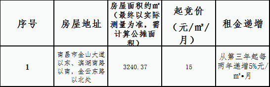 七、报名时间:发布公告之日起7个工作日为一个竞拍周期,每个竞拍周期满后若收到超过3人报名则组织竞拍,若未收到3人报名则进入下一个竞拍周期,将在南昌金开集团有限公司微信公众号公布租赁商务条款的调整信息。