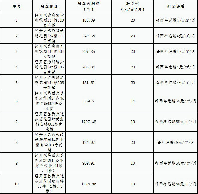 三、本次竞拍只报起竞价,房屋每间租金起竞价为:
