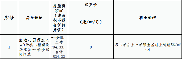空港花园安置房小区房屋租赁竞拍公告