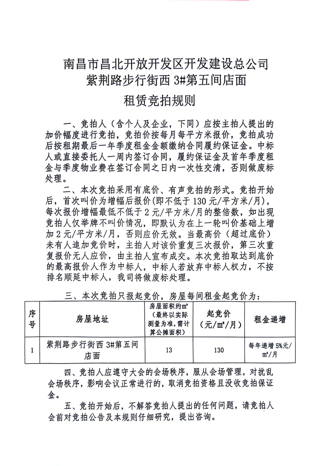 紫荆路步行街西3#第五间店面租赁竞拍公告