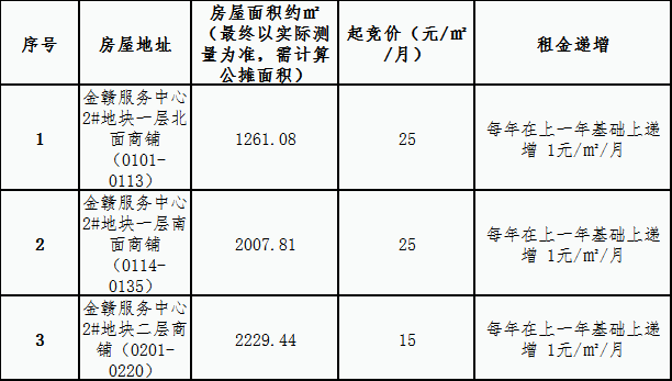 金赣服务中心 2#地块一、二层商铺租赁竞拍公告