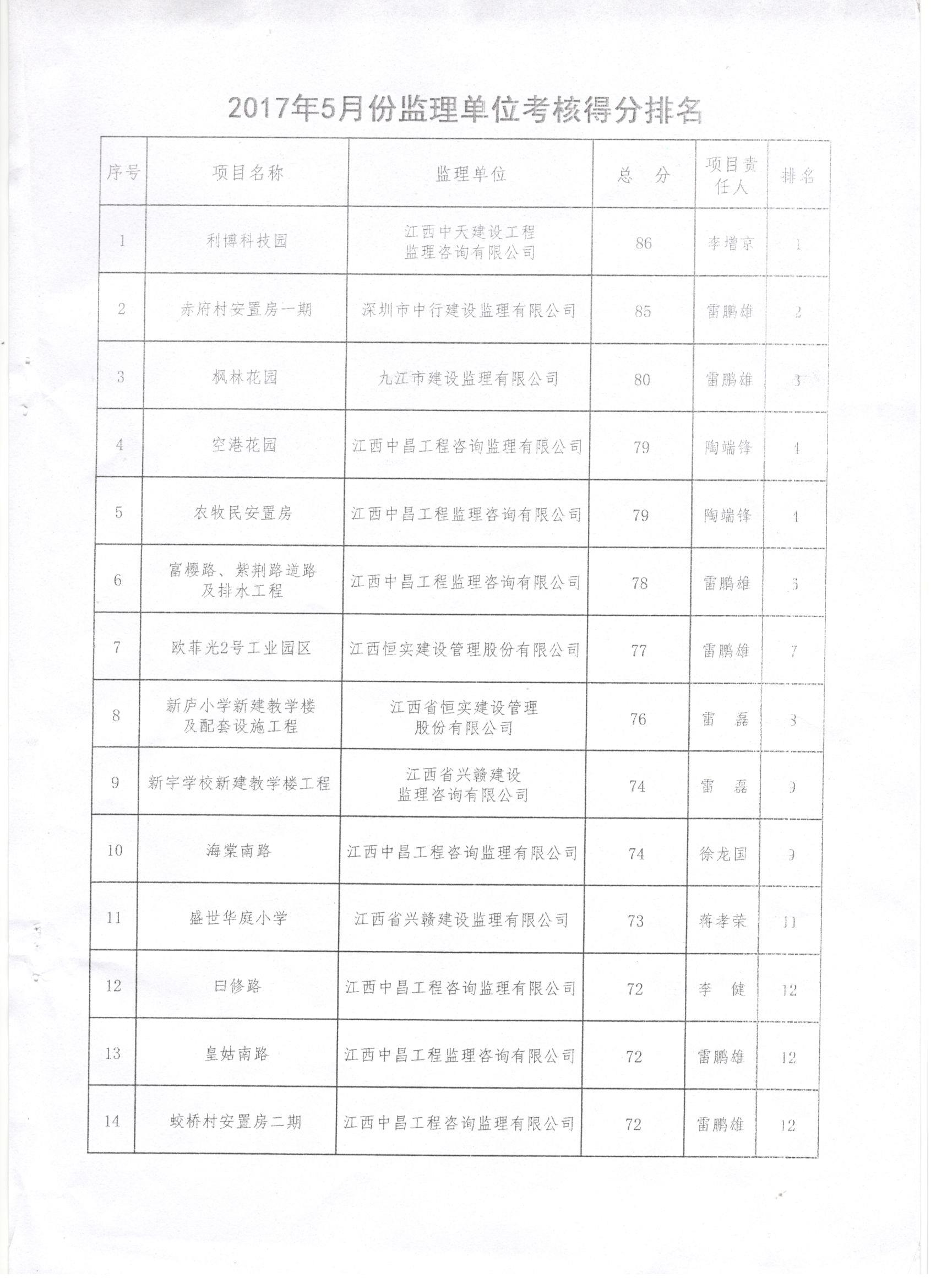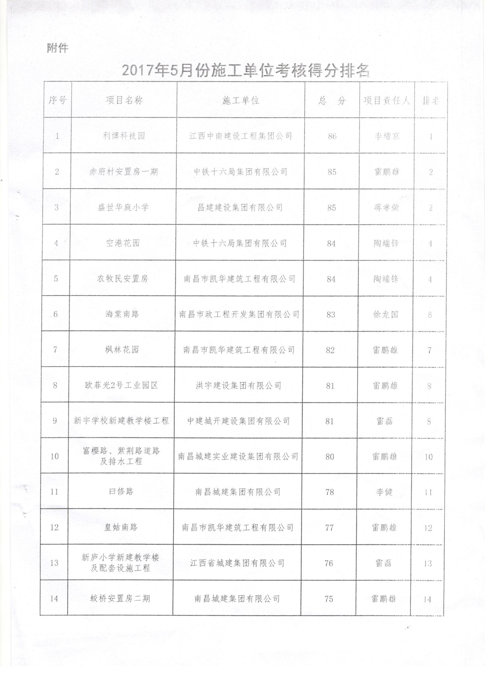 金开集团2017年5月施工、监理考核公布啦!