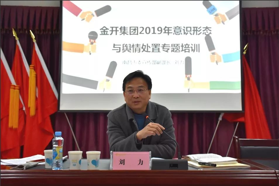 为提升新形势下意识形态及舆情处置工作水平,进一步加强对意识形态工作的认识,提升舆情分析、收集、引导及应对能力,1月11日上午,金开集团举办意识形态工作及舆情处置专题培训,市委宣传部副部长刘力受邀到场,为干部职工上了一堂精彩的宣传理论实践课。集团党委副书记、副总经理熊爱华主持,集团领导方义发、边文彬、熊永赋及集团所属各公司工程、行政、宣传相关人员90余人参加。