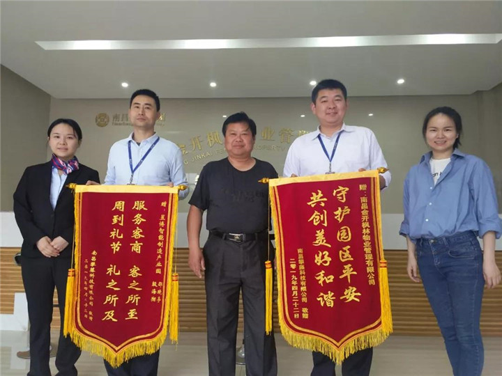 火红的锦旗,是物业公司的荣誉,也是对物业公司的认可,更是一种责任和动力,是对物业人员日后工作的鼓励和鞭策。相信金开枫林物业公司驻昱博现场全体员工将带着这份沉甸甸的心意,继续以更高的标准严格要求自己,将更优质的服务回馈企业。