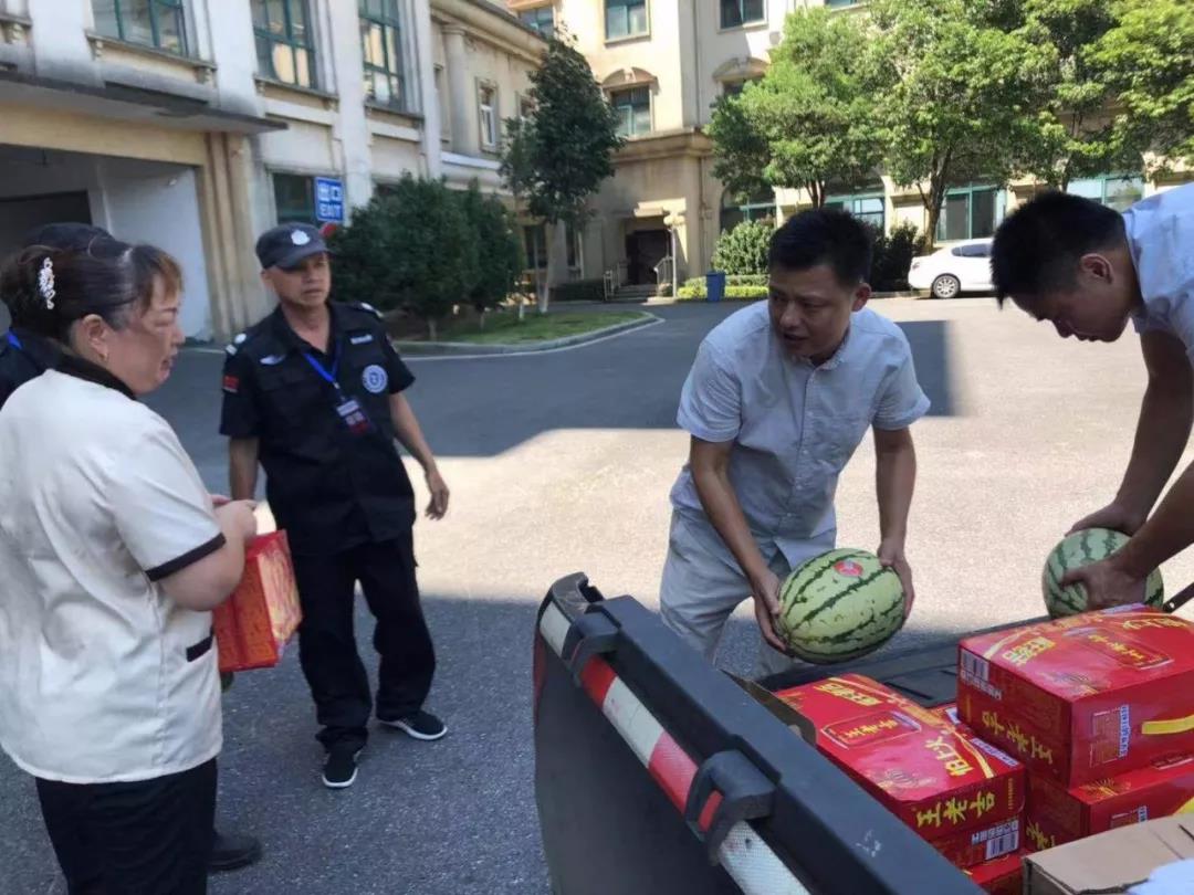 慰问组来到各项目秩序维护值班岗亭、物业服务中心,了解奋战在一线物业员工的工作、生活情况,并叮嘱他们在坚守岗位的同时,注意防暑降温,保重身体,随后将凉茶、西瓜等慰问品送到员工手中。