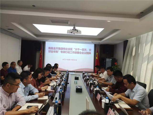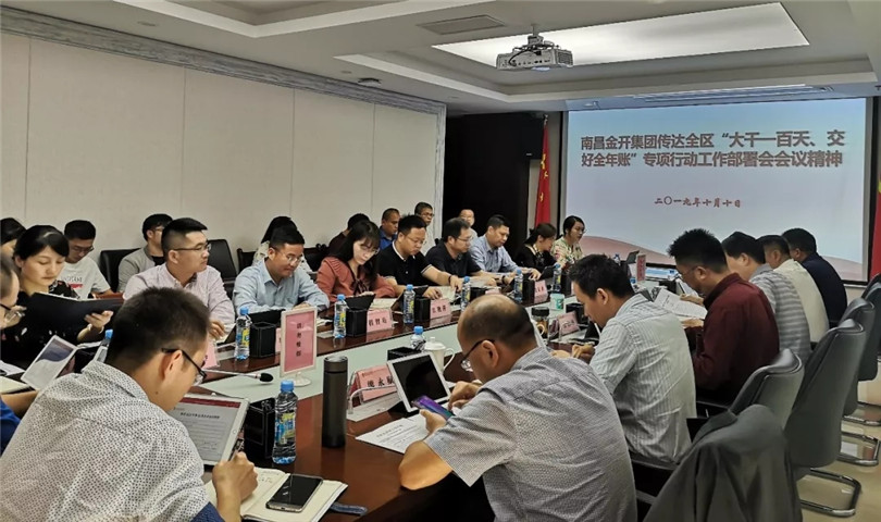 10月10日,南昌金开集团召开“大干一百天、交好全年账”专项行动工作部署会,集团党委书记、董事长谢荣华主持会议并讲话。集团党委班子成员出席会议,集团各部门、各公司负责人参加会议。