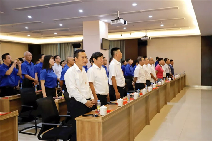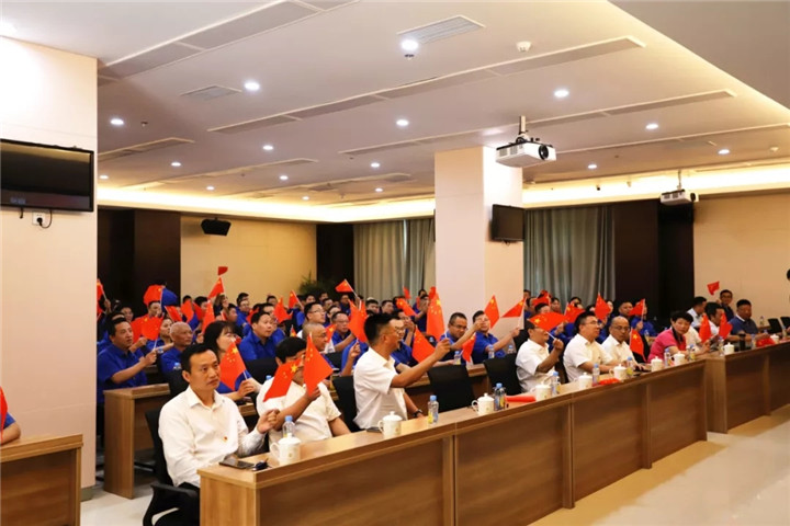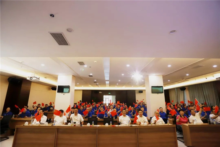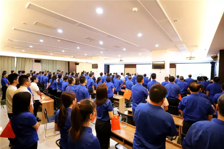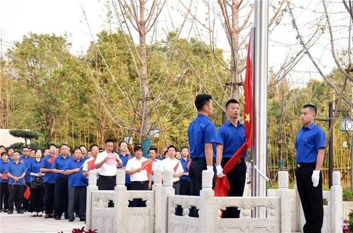随着谢荣华按下启动键,伴随着激昂雄壮的国歌声,鲜艳的五星红旗冉冉升起、迎风飘扬,金开集团在场的每一个人满怀崇敬之情向国旗行注目礼,表达对祖国母亲的崇高敬意和最美好的祝福。