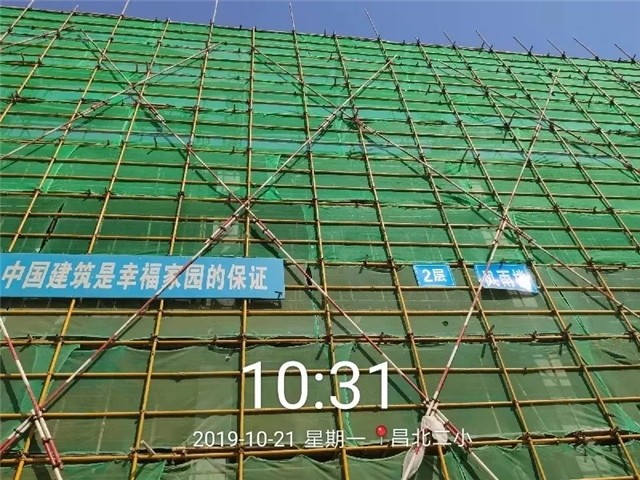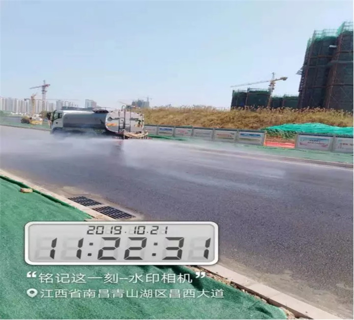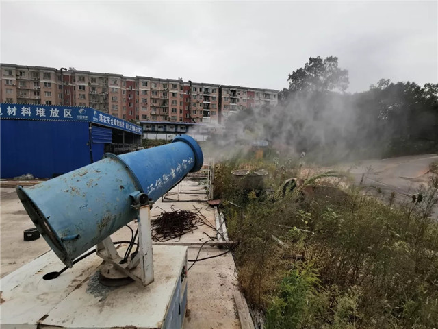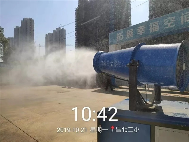 昌北二小雾炮机降尘,裸土覆盖,设置安全防护网,清洗现场道路,时刻保持大门口整洁