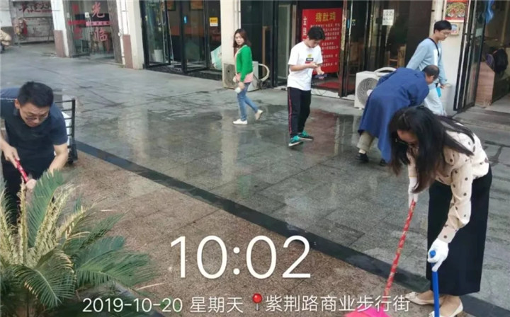 10月20日,正合公司副总经理熊似梦带领公司相关工作人员,继续打扫步行街卫生、清洗紫荆路步行街街面,切实把文明创建工作落到实处。