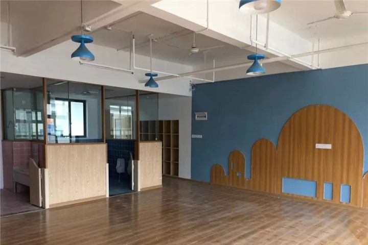 截止目前,该项目已完成幼儿园的墙体拆除、墙体开槽布置水电管线工程,幼儿园一层至三层墙体砌筑及粉刷、幼儿园二层至三层的刮瓷及卫生间贴砖、幼儿园一层至三层护墙板、教室装饰门安装、柜子安装、墙面及顶棚面乳胶漆;下一步将进行幼儿园园路铺装、绿化、室外给排水工程实施。