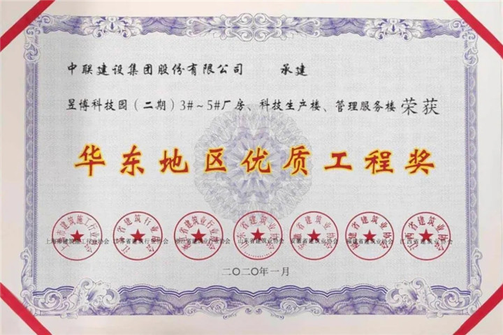 金开集团项目公司昱博科技园二期项目荣获华东地区各省建筑业协会联合颁发的“华东地区优质工程奖”,成为我区首个获得此级别奖项的政府投资项目!