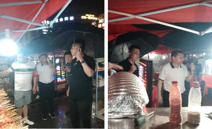 最后,袁扣华指出:一做好宣传教育工作,加强各摊位摊主的个人卫生及各摊位卫生管理;二进入夜市需扫昌通码及测量体温通过后方可进入;三烧烤摊主必须安装合格油烟净化器,确保油烟环保、干净卫生。
