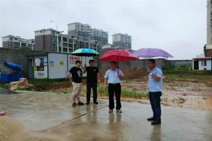 近期经开区普降大雨,遭遇今年入汛以来持续时间最长强降雨,建设项目防汛形势一度严峻,7月8日上午,金开集团党委书记、董事长谢荣华迅速组织,冒大雨带队深入防汛一线调度建设项目防汛工作,集团党委副书记、副总经理袁扣华、集团党委委员熊永赋、集团副总经理胡许亮、各子公司分管领导、集团工程技术部及各子公司工程部相关人员参加。