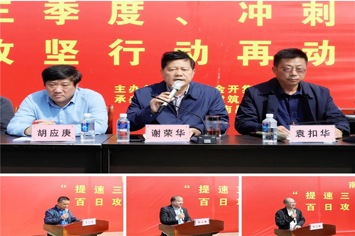 会上,胡许亮传达了《南昌金开集团“提速三季度、冲刺下半年”百日攻坚行动方案》。随后,建设单位、监理和施工单位代表分别作了表态发言。