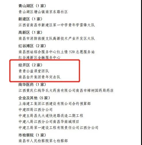 南昌金开集团青年突击队紧密结合集团五大业务板块中心工作,坚持服务青年成长、服务行业建设、服务民生关切,打造了一支能吃苦,重团结,讲奉献的青年团队。深化“青”字号品牌力量,深化青年文明号、青年突击队创建工作,在防疫、防汛、铜锣湾开业、紫荆路开街等重点工作中发挥生力军和突击队作用。持续开展“宝贝出村”“青蒿行动”等形式多样、内涵丰富的志愿服务活动,助力企业更好履行社会责任。2020年初全员参与社区疫情防控,积极推进“复工复产”,主动服从服务战“疫”大局;7月防汛形势严峻,集团团员青年主动请缨,迅速组建防汛抢险青年突击队,前往一线支援防汛工作,充分展现了新时代青年的责任与担当。