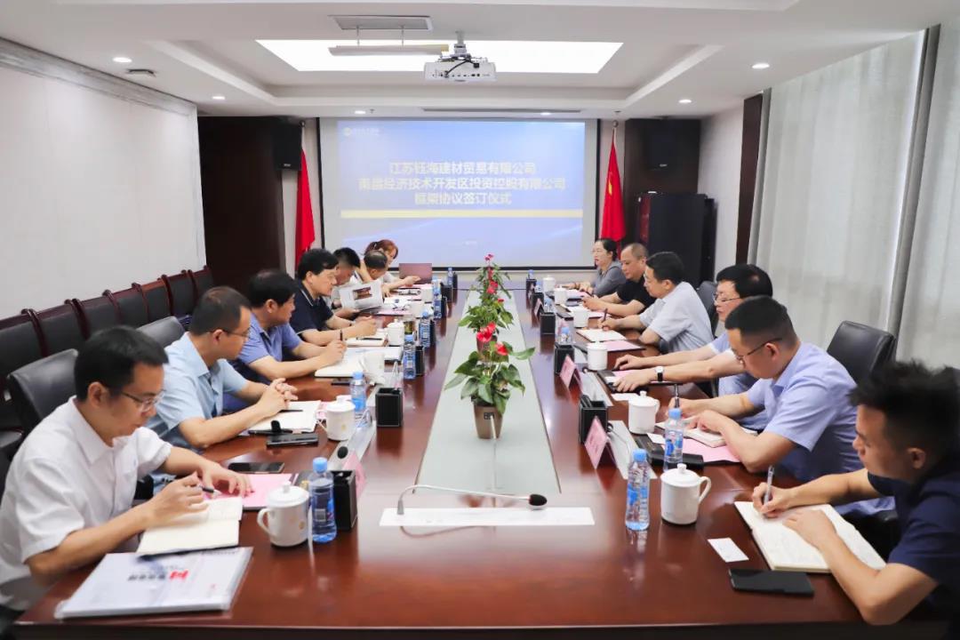 6月16日上午控股公司与江苏钰海建材贸易有限公司在集团701会议室举行战略合作框架协议签约仪式。集团党委书记、董事长谢荣华,集团领导班子成员袁扣华,胡应庚,钟序辉,达海控股集团党委成员、财务总监葛纬,达海控股集团董事、南通四建集团总经理季豪,上海亨克电梯有限公司总经理季勇,江苏钰海贸易公司总经理赵大顺,江苏钰海贸易公司副总经理郭宏晴等出席签约仪式。控股公司董事长胡应庚与江苏钰海贸易公司总经理赵大顺代表双方签署战略合作框架协议。