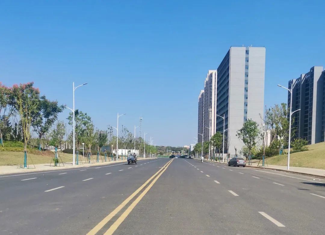 ● 机场路(建业大道—兴业大道)于2019年3月开工建设。在项目建设过程中,金开集团协同参建各方不懈努力,共同克服了中石化输油管线迁改、电力、燃气、给水等重重困难。最终于2022年3月实现道路全线竣工通车,进一步提高和完善了儒乐湖区域道路交通整体通行能力和服务水平。