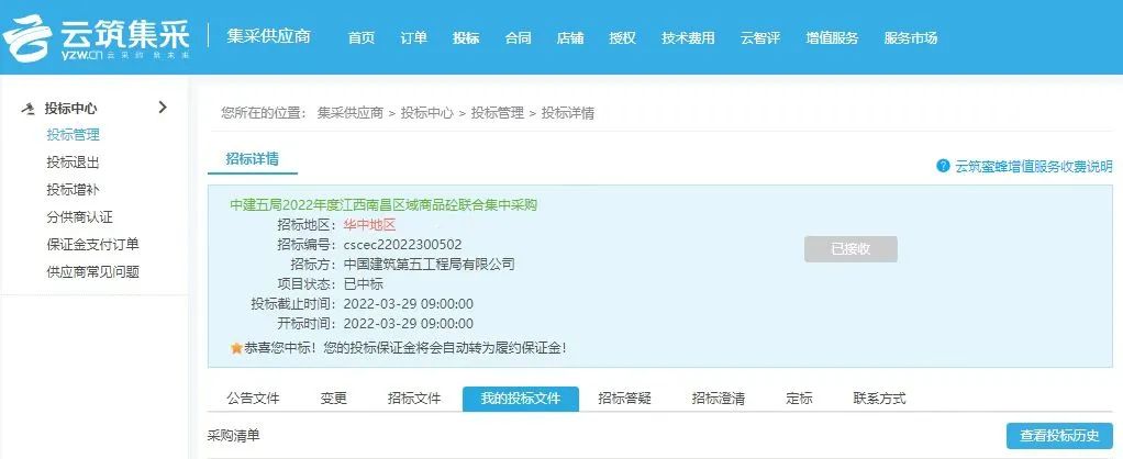 ➤ 中建五局2022年度防火门集采项目及江西南昌区域商品砼集采项目,合同金额约2.1亿元。