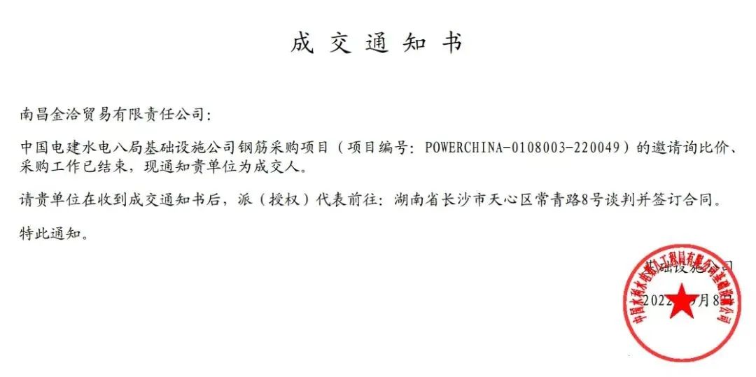 ➤中水八局南昌技术协同创新园二期钢筋采购项目(2项),合同金额合计约8800万元。