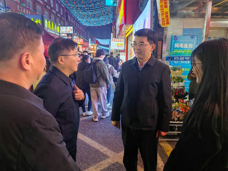 为助力经开区夜市经济高质量发展,推进紫荆夜市运营管理工作再上新台阶,2月27日,区党工委委员、管委会副主任贺敏带队调研紫荆夜市。集团党委书记、董事长涂亮,集团党委委员、副总经理胡应庚,集团综合事务部及枫林产业公司负责人等相关人员陪同。