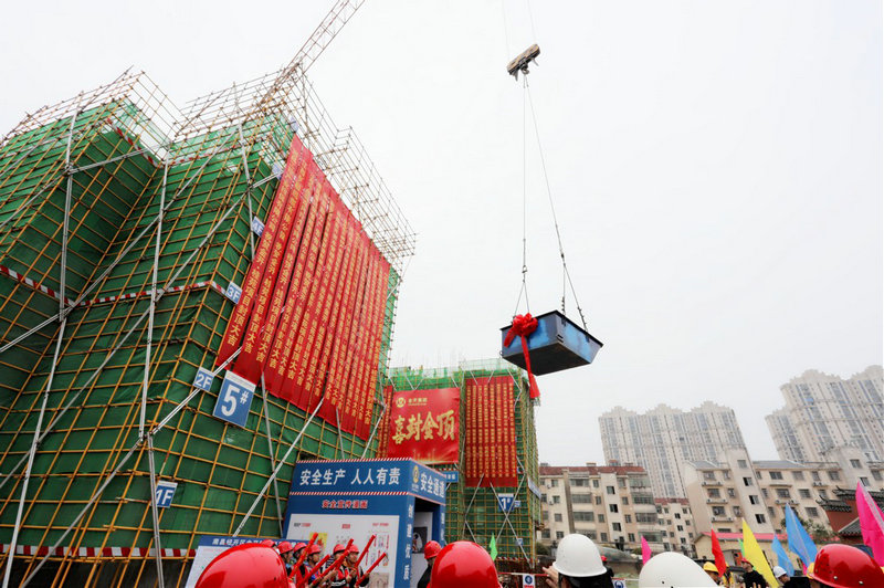 3月30日上午,由金开集团首次自主开发的房地产项目——金开·桂苑迎来首栋单体建筑主体结构封顶。集团党委书记、董事长涂亮出席封顶仪式,集团班子成员李茶根、黄新强、胡许亮、万居易,集团工会主席袁扣华,正合公司、工匠集团及参建单位负责人参加。