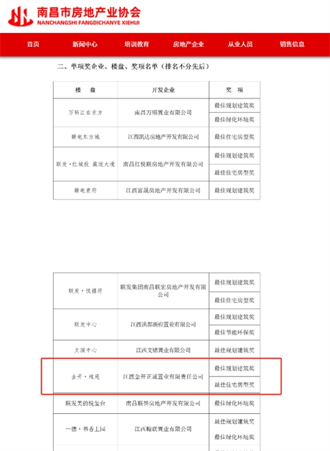 南昌金开集团自主开发的房地产项目——金开·桂苑,在南昌市房协举办的第十二届"南昌市最佳楼盘"评比中,喜获"最佳规划建筑奖"及"最佳住宅房型奖"。