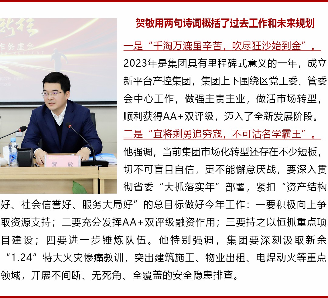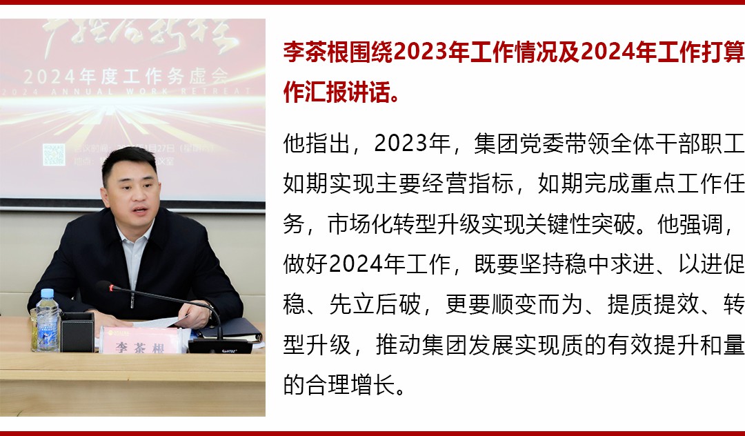 会上,集团人力资源部、工程技术部、财务部、融资部及各子公司作了工作报告,全面总结了2023年工作,分析了工作中存在的问题和困难,重点谋划了2024年工作。