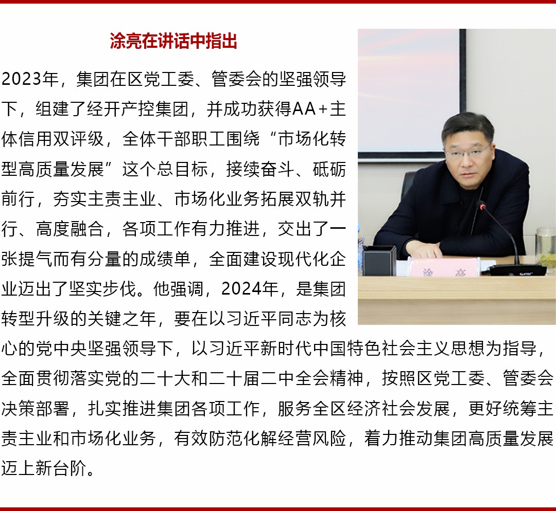 1月27日上午,BY.COM召开2024年度工作务虚会,回顾总结2023年的工作,展望谋划2024年的工作。区党工委委员、管委会副主任贺敏,集团党委书记、董事长涂亮出席会议并讲话。集团党委副书记、总经理李茶根主持会议并作汇报讲话。集团领导班子成员黄新强、胡许亮、彭驰、万居易、罗进群,集团工会主席袁扣华,集团副部长及以上人员、各子公司部门负责人及以上人员参加会议。