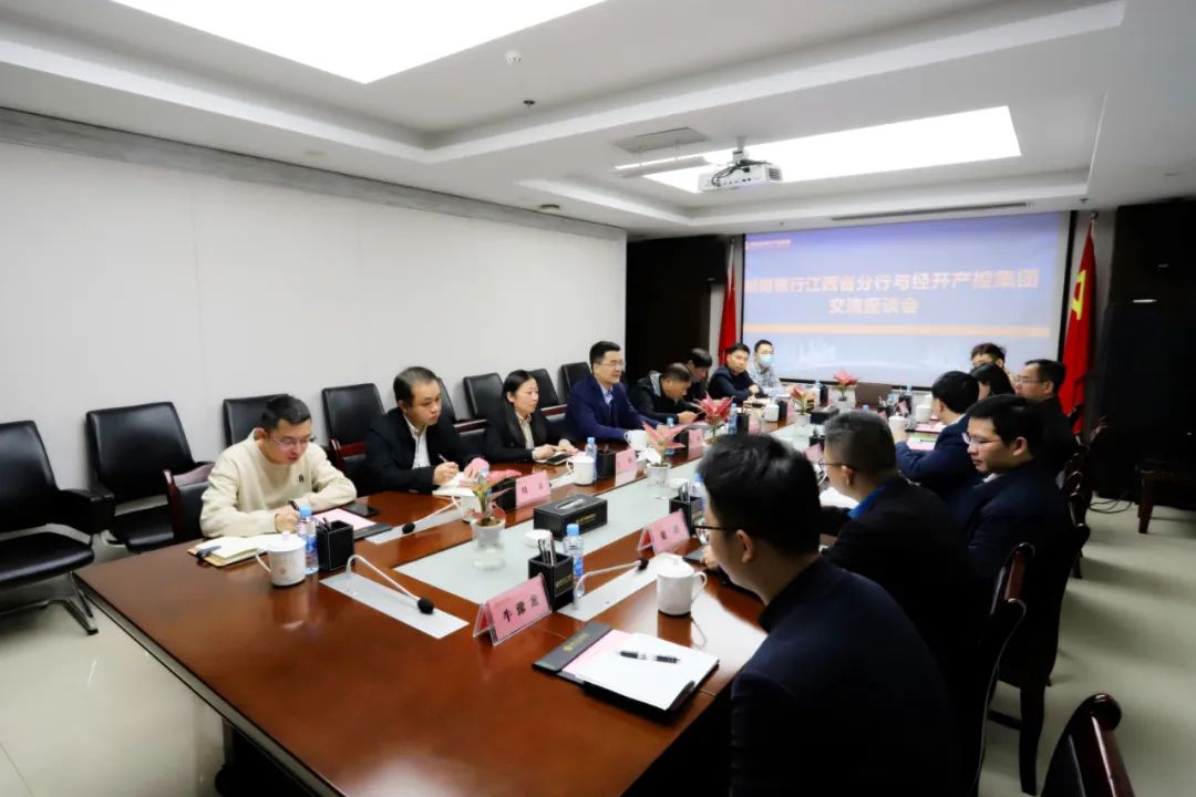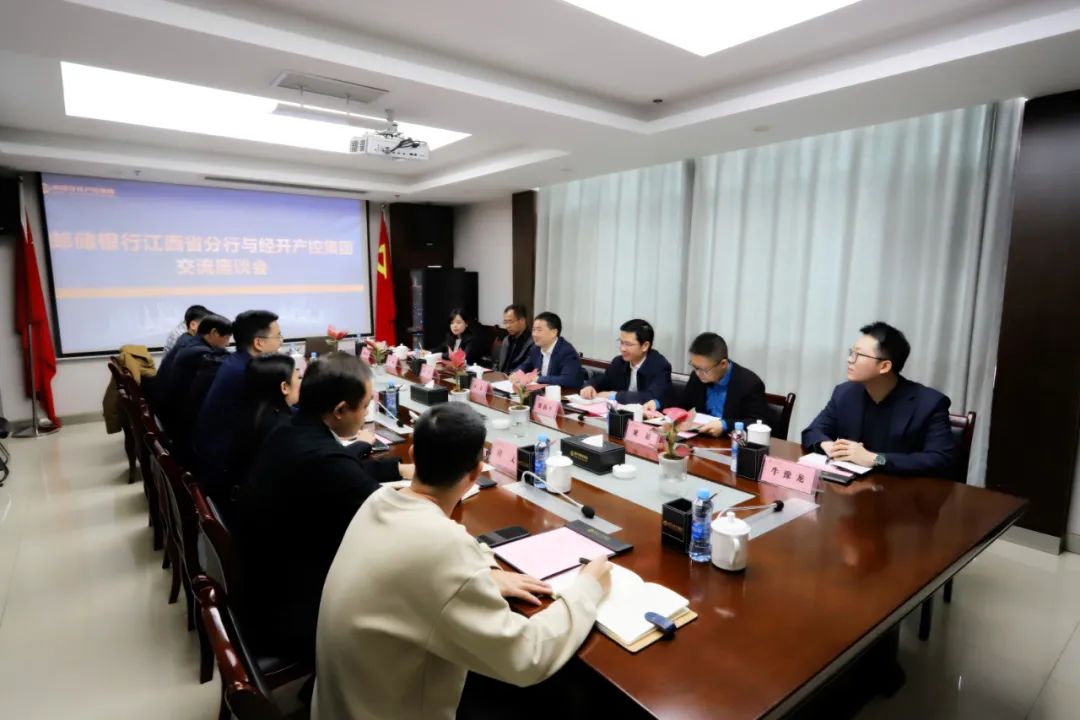 3月22日上午,邮政储蓄银行江西省分行党委委员、副行长汪志一行来访经开产控集团交流座谈。区党工委委员、管委会副主任贺敏出席。经开产控集团党委书记、董事长涂亮,区财政局副局长王艳,临空城投党委书记、董事长胡应庚,综保建投董事长方宁参加。
