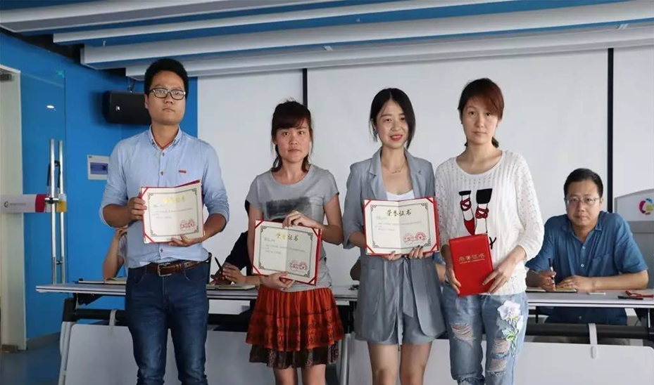4名“金点子”获奖员工合影