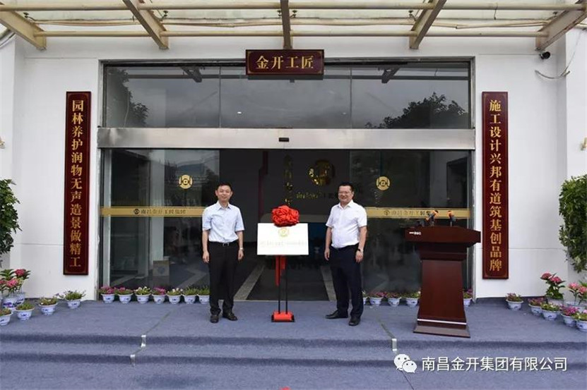 仪式最后,程建兵、胡顺明共同为“南昌金开工匠建设工程集团有限公司”揭牌。