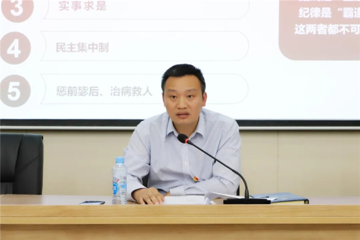 11月9日,金开集团机关党支部在保利108会议室开展专题党课及主题党日活动。活动首先由集团党委委员、纪委书记方义发为集团机关支部全体党员、预备党员、发展对象及入党积极分子,集团纪检监察部,集团审计办,金匠置业等百余人,讲授了题为《做一名忠诚干净担当的金开人》专题党课。从领会精神、以案释纪和心得体会三个方面,深入解读《中国共产党纪律处分条例》,阐述解释党的六大纪律,通过分析国际国内发展形势,结合集团十四五发展目标和党员学习方向,点题《做一名忠诚干净担当的金开人》。有案例、有数据、有时政、有方向,寓意深刻,思想精炼,措施具体,好评如潮。