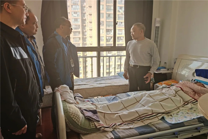 刚抵达社区,党员同志们便在社区书记李广东的带领下,前往困难群众章老先生的家中探望,老先生的爱人因中风常年卧床不起,只靠输营养液维持生命。党支部书记钟序辉详细地询问了章老家中的情况以及遇到的困难,同时送上了党支部所有党员的一片心意、一份关怀,勉励他们要相信党组织,生活一定会越过越好。