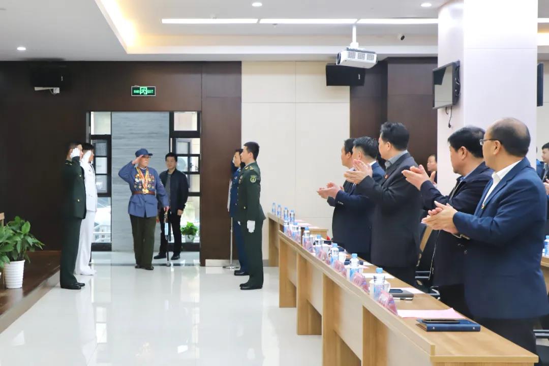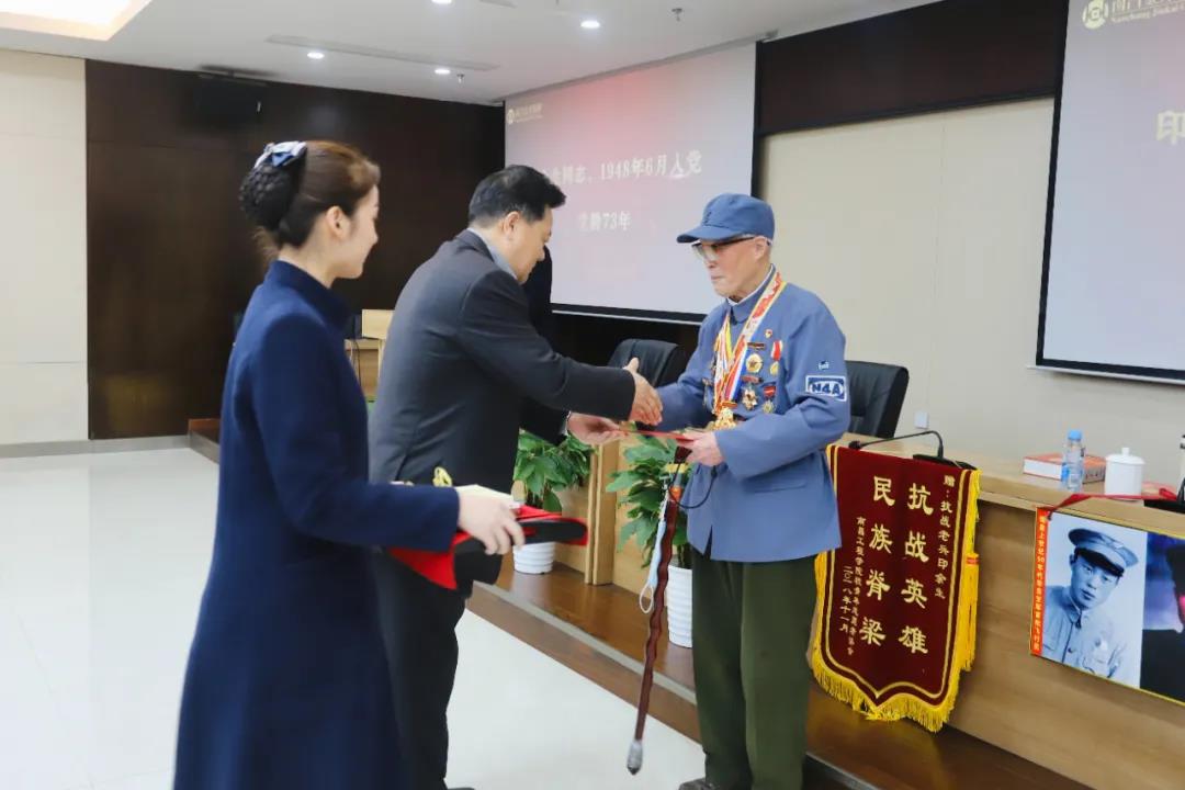 耳目灵便、声若洪钟,如果不是集团党委副书记、副总经理袁扣华的开场白和老兵的自我介绍,在场的同志们可能想不到,神采奕奕向大家走来的老人,已经年逾9旬,这是革命前辈、庆祝中华人民共和国成立70周年纪念章获得者、抗战老兵印余生给大家的第一印象。