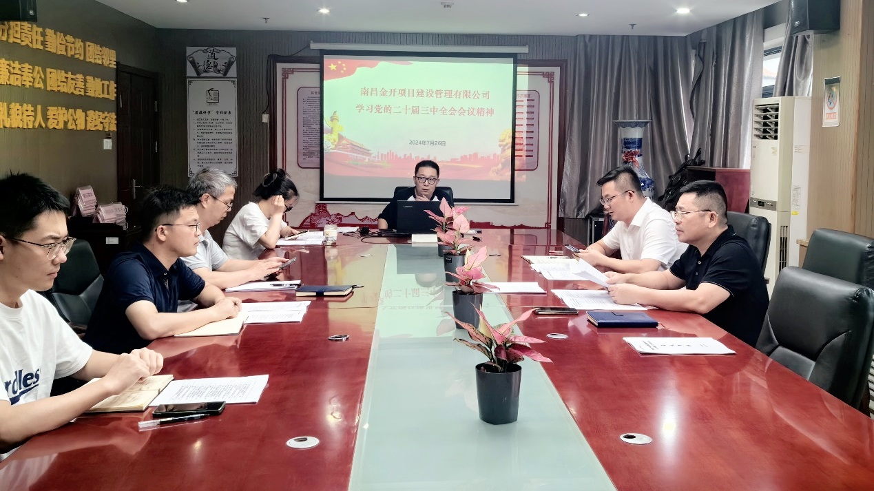 7月26日,工匠集团党支部组织全体党员干部学习贯彻党的二十届三中全会精神。会议指出,党的二十届三中全会明确传递出进一步深化改革的坚定决心。在这一改革创新的大潮中,工匠集团上下要认真学习贯彻全会精神,着眼本职工作,围绕施工板块建设业务,加快集团的项目管理水平和安全生产能力的提高,着力解决制约公司高质量发展的卡点堵点问题,全力打造金开桂苑、岚苑精品房建项目,提升企业的核心竞争力和品牌影响力,为实现集团的可持续发展及美丽南昌贡献“工匠”的力量。