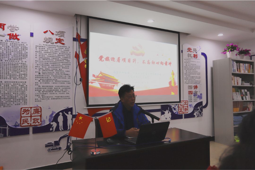随后,共建党支部召开第一次会议。会上,双方共同审议通过了共建党支部党员先锋岗名单;并由袁扣华为大家带来了一堂主题为“党旗迎着项目飘  不忘初心向前冲”的党课。