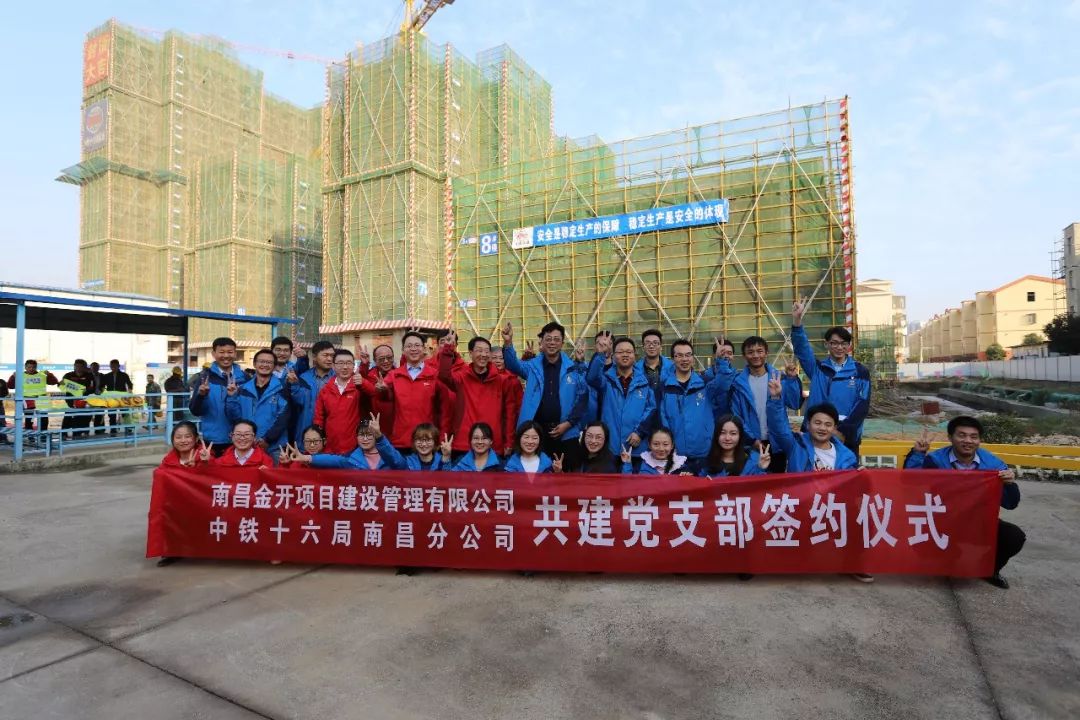11月30日,南昌金开集团下属项目公司与中铁十六局南昌分公司党支部开展支部共建活动。活动开始,项目公司党支部书记袁扣华与中铁十六局党支部书记王言生分别代表双方支部作表态发言,并签署了党支部共建协议。